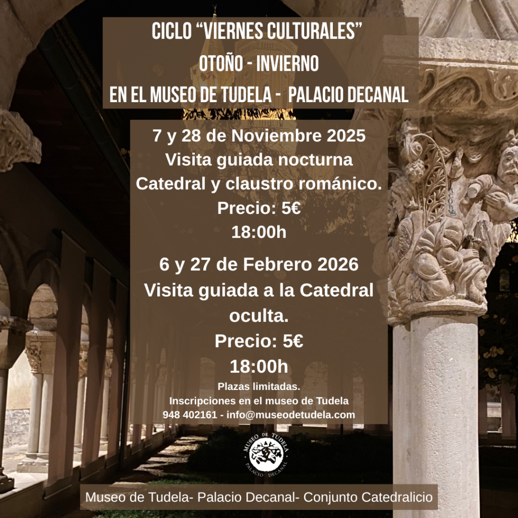 Con la llegada del otoño – invierno, el Museo de Tudela inaugura un ciclo de “Viernes Culturales”. Esperamos que las actividades sean de vuestro interés.
